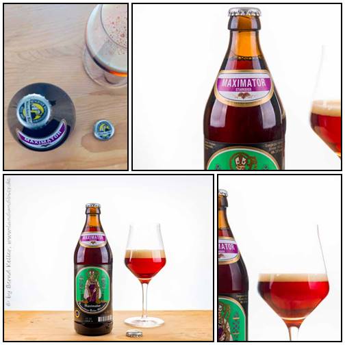 Nussbraun ist der üppige Schaum auf dem dunkel Rubin funkelnden, blanken Doppelbock. Der Schaum ist feinporig und mittellang haltbar, so dass alsbald die Düfte vollends in die Nase strömen können. Diese Düfte sind eine wahre Freude, voll mit den Gerüchen nach Banane und Schokolade, mit sanften Lakritz und dezenten Kaffee. Auch der hohe Alkoholgehalt schwingt in den Düften moderat mit. Schon im Antrunk sind die Geschmacks- und Fruchtaromen bemerkbar, allen voran die Banane und die Schokolade. Brotige und nussige Malzaromen, rote Beeren und Kaffee begleiten diesen Schluck. Der Körper des Augustiner Maximator Doppelbock ist sehr dicht und süß, mit nur wenig prägenden Röstaromen, aber mit viel Alkohol, die ich als durchaus scharf wahrnehme. Die Textur des Augustiner Maximator ist buttrig bis ölig, darüber hinaus ist viel Kohlensäure vorhanden. Im Nachtrunk ist endlich ein wenig bitterer Hopfen spürbar. Mit etwas dunkleren Röstmalz verabschiedet sich der Augustiner Maximator Doppelbock leicht klebrig.